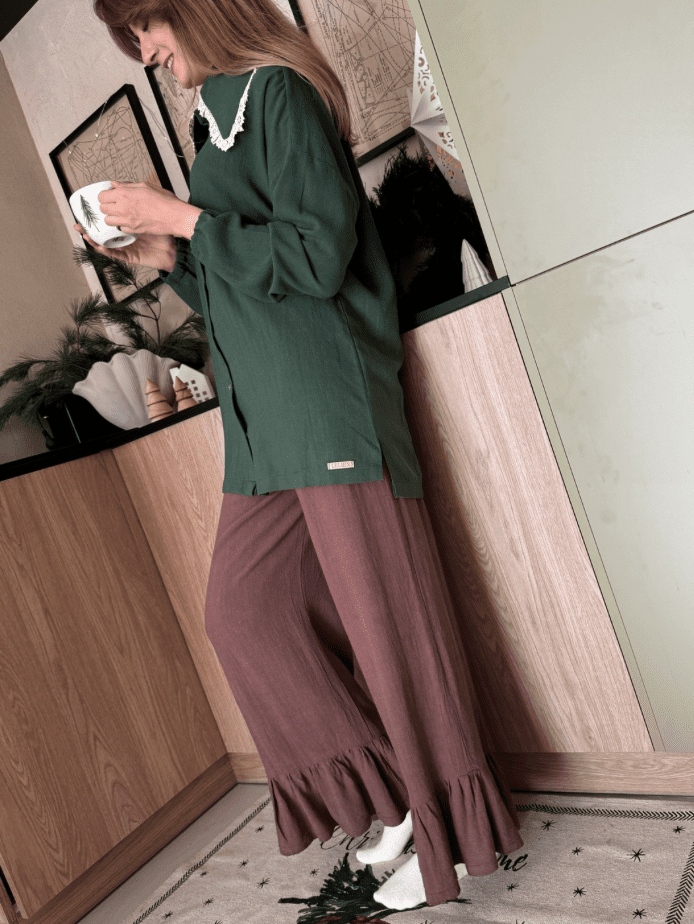 Zamówiłam długie spodnie z falbanką, kurczę naprawdę fajne! Trochę się bałam czy na żywo będą wyglądać tak dobrze, ale jestem zadowolona ☺️ dzięki!
